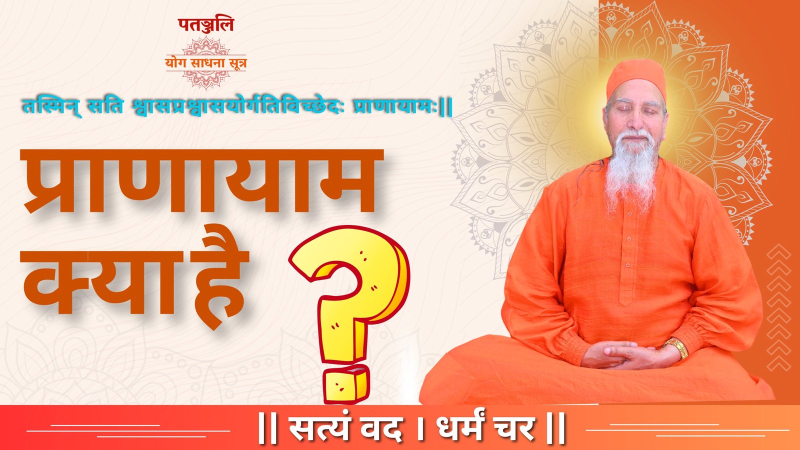 Yogtirth Yog Yatra प्राणायाम क्या है By: Yogtirth Ayurved | Published 25-07-2025 तस्मिन् सति श्वासप्रश्वासयोर्गतिविच्छेदः प्राणायामः ॥ 49 ॥ आसन